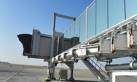 旋轉(zhuǎn)伸縮式機橋旋轉(zhuǎn)伸縮式旅客登機橋是對接飛機和機場航站樓(或固定橋)的一種帶有封閉式旅客過道的登機設(shè)備。
